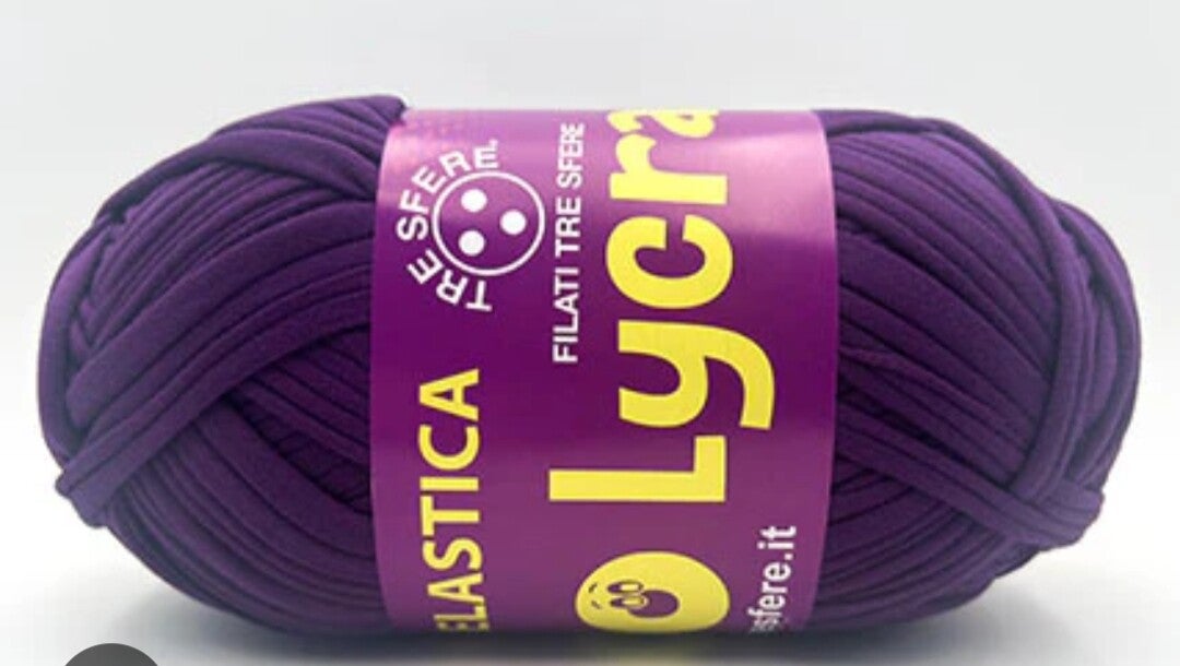 La Fettuccia WAOO LYCRA elastica, è un prodotto di alta qualità, morbida al tatto lucida ed elastica, per borse ed accessori a uncinetto, larghezza cm 2 omogenea e uguale per tutto il gomitolo taglio laser di precisione, gomitolo da gr 300 mt 110, uncinetto ferri 6-9, composizione: 95% PL 5% SPANDEX