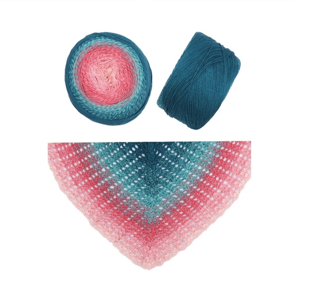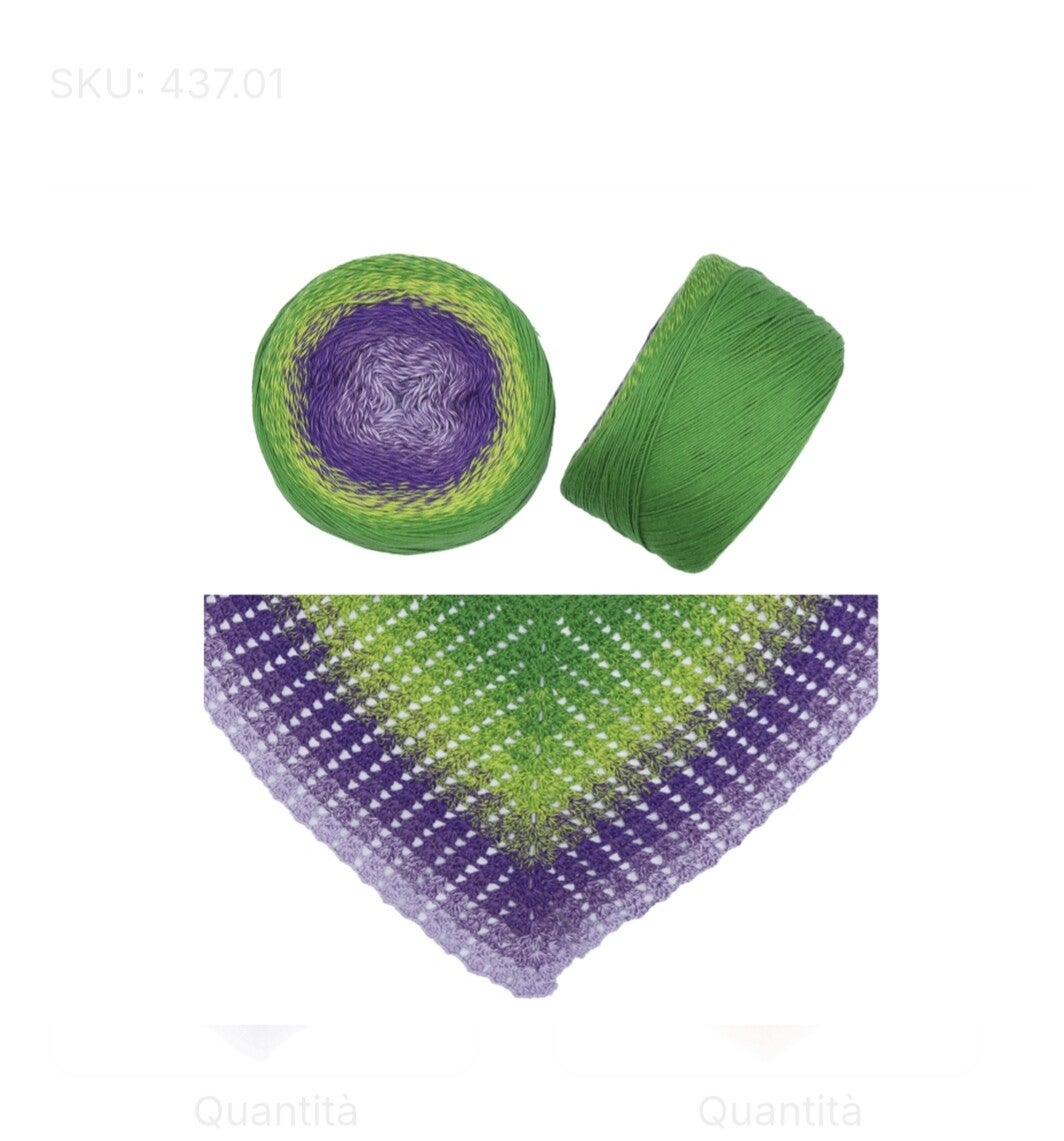 Cotone Milu, morbida cake con armoniosa sfumatura di ben 5 colori diversi, 150 grammi che sviluppa 600 metri, uncinetto 3mm. ferri 2,5mm, 55% cotone 45% acrilico, con una sola cake si possono realizzare scialle, borse, coprispalle, cardigan e maglie.